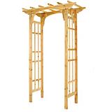 Basic wood arbour features stabilizer brackets to increase its sturdiness Arbour is made with all-weather stained cedar Dimensions: 4'4" x 7' (1.3 x 2.1 m)