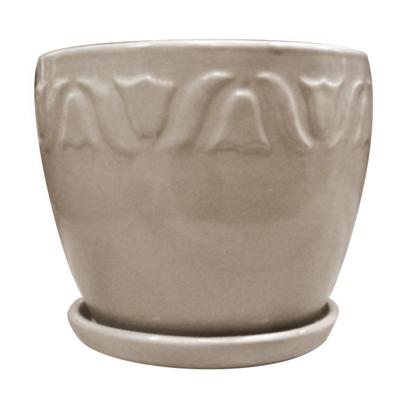 Display your plants in style, with this beautiful ceramic planter. It is the Perfect accent piece to any room. Classic shape with decorative detailing Includes attached saucer Thick glazes in stunning colors Indoor use