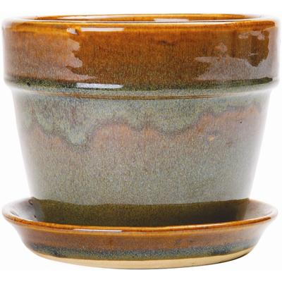 This lower, wider bottomed pot is preferred for growing ferns, azaleas and other shallow rooted plants. A distinctive stoneware with reactive glazes, no two pots are identical. Drainage Hole Indoor use Attached saucer Holds 6" azalea grower'... Read more