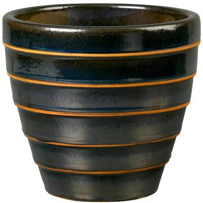 High fired black glaze is offset by unglazed lines in a graduated taper with a contemporary look. Hole in bottom for proper drainage The high fired glaze makes this planter frost resistant Outdoor Usage