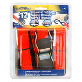 12 ft. Rubberized cambuckle. 1 in.wide strap. Vinyl-coated S-hooks. Orange and black.