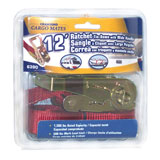 Clip-on tie-down. 12-ft. wide ratchet handle. 1-in. wide strap. Red.