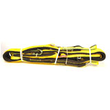 Tie-down set includes two 48 in. x 4 1/4 in. and two 100 ft. x 2 1/4 in. straps. Padded terylene straps. Hooks made of steel. Capacity (safe working load): 5,000 lb (2,270 kg). Yellow.