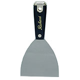 Taping knife. 4 in. Tapes drywall joints, patches drywall and sets drywall nails. High-carbon steel rounded and flexible blade. Black polypropylene handle. Steel head assembled with steel rivet and one eyelet. Also offered in 5 in. and 6 in.