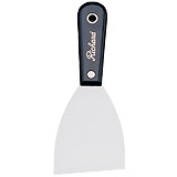 Wall scraper. 3 in. To apply drywall compounds. Pro Series. High-carbon steel blades, black polupropylene handle: one rustproof rivet and one eyelet hold the handle to the blade. Also offered in 3 1/2 in.