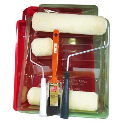 Shur-Line's One Coater 8 Pc kit contains more pcs then any other kit. Kit Includes: Tray, Liner, 9.5" Roller Frame, 2 'One Coater' 9.5" Roller Covers, 1.5" Angled Paint Brush, 3" Roller Frame, and 1 "One Coater "3" Roller Cover. One Coater Rolle... Read more