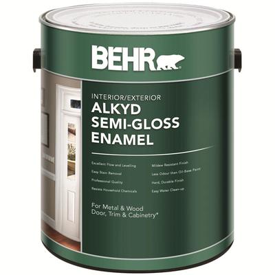 BEHR® Alkyd Semi-Gloss Enamel paint provides the performance and durability of a traditional oil-base paint with the ease of use and convenience of a water-base paint. This professional quality finish offers excellent flow and levelling with eas... Read more