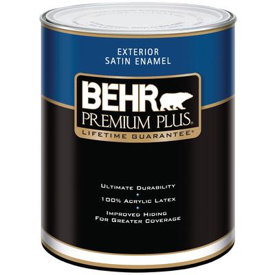 BEHR PREMIUM PLUS Exterior Satin Enamel Paint - Ultra Pure White, 946mL view