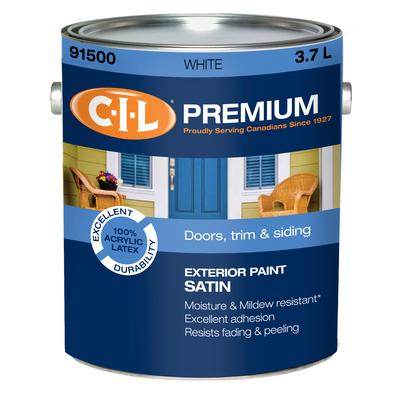CIL® Premium exterior satin paint is ideal for all doors, trim and siding. This 100% acrylic latex paint is specially formulated to prevent cracking, fading, peeling and UV damage. Its excellent adhesion and moisture & mildew resistance** makes i... Read more