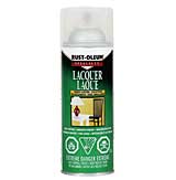 Lacquer. 312-g aerosol can. For both interior and exterior applications. High lustre coating. Dries quickly. Smooth finish. Clear. Also available in black or white.