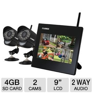 Lorex LW2912 Wireless Video Monitoring System - 9" LCD Monitor, 2 Cameras, 2-Way Audio, 4GB SD Card view