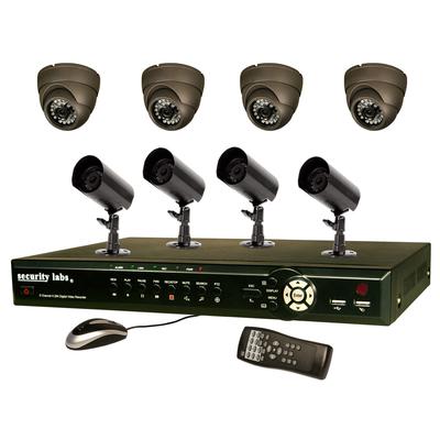 Security Labs 8 Channel Surveillance System with H.264 / Smartphone DVR with 4 IR Turret Dome and 4... view