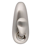 Medium-size metal hook with 2 adhesive strips. Holds on strongly. Holds a weight capacity of up to 3 lb. Brushed nickel finish. Sold by the unit.