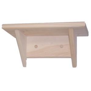 Pine Shelf Unfinished pine shelf Perfect shelf for any room in the house Ready to paint, stain or leave as natural pine Easy to hang and is very strong Some assembly required 5.5" x 5.5" x 12"