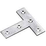 T-plate. 2 1/2 in. x 5/8 in. Fox boxes, chests or any item that requires corner strengthening. Made of steel. Zinc finish. Sold individually.