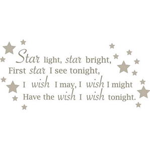 Appliques Easy to apply Peel and stick Popular nursery phrase Adds sparkle to any nursery Neutral pewter colour - match any décor 27 pieces