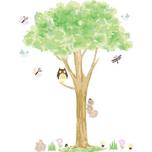 Appliques Easy to apply Peel and stick Feature wall accent Use in any room - safe for bathrooms 2 sheets make a 55" h by 44" w tree with wildlife (assembled) 26 pieces