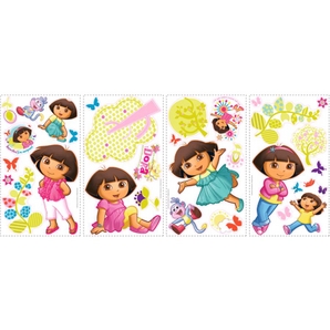 Appliques Dora Fun, quick and easy to apply Peel and stick Repositionable Decorate any clean smooth surface 28 pieces