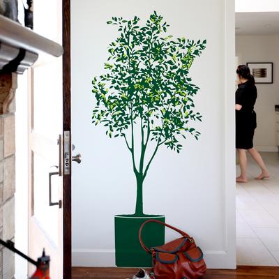 Conserve water and "plant" a faux olive tree instead. Designed by Mina Javid for Blik Surface Graphics, these self-adhesive vinyl decals are easy to apply and are fully removable. Apply to a smooth, dry wall surface. Package includes 1 potted Oliv... Read more