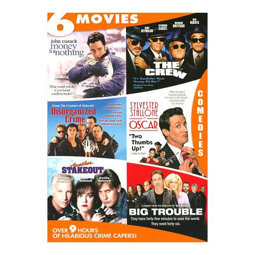 This set of six crime comedies includes MONEY FOR NOTHING, THE CREW, DISORGANIZED CRIME, OSCAR, ANOTHER STAKEOUT, and BIG TROUBLE. Theatrical Release Date 2013 Runtime (minutes) 592 Format DVD Number of Discs 4