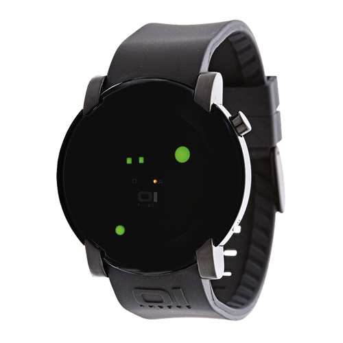 OverviewDetails and SpecsStand out from the time-telling crowd with this sleek and cool watch by 01 THE ONE. It has a minimal round stainless steel case with a polyurethane band, and displays the time in binary method using LED lights. Mor... Read more