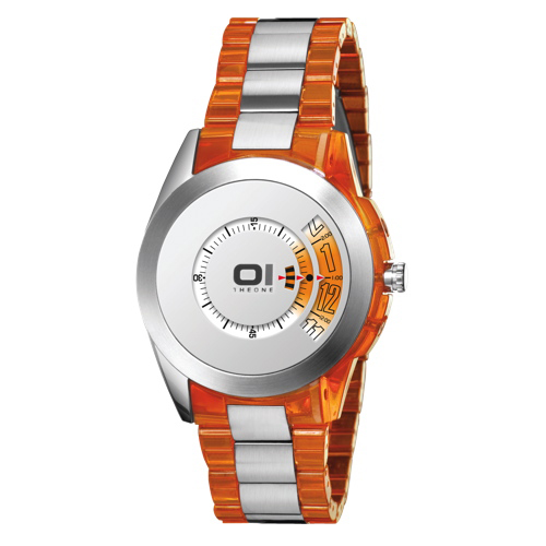 01THEONE Stainless Steel Orbit Watch (AN08G07) - Silver/Orange view