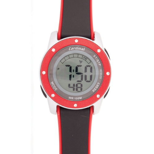 Cardinal Women's Digital Watch (3029) - Black/Red Band/Silver Dial view