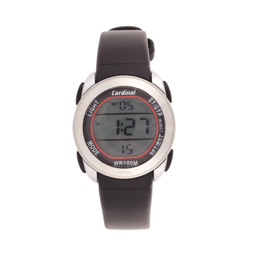 OverviewDetails and SpecsStylish and modern, this Cardinal women's digital watch features a soft resin strap and a cool-looking stainless steel top ring. It has a low drain module and is water resistant to 100 metres, so you can even wear i... Read more