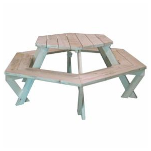 4B WOOD PRODUCTS Unfinished Hexagon Pine Picnic Table view