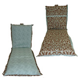Lounge chair cushion. Made of waterproof polyester. Reversible. Blue and brown.