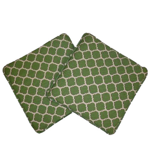 Set of 2 cushions. 16 in. x 16 in. 1,5 in. thick. Made of spun. Green and beige.