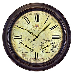 You can record the time of the sunset from your lawn chair with this garden-friendly Giardino clock. The thermometer provides accurate temperature readings and the hygrometer measures humidity. A beautiful weathered rust finish hugs the dial.... Read more