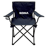 Folding camping chair. Made of steel and fabric. Rona logo printed front and back of chair.