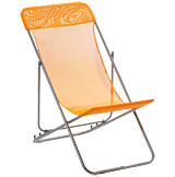 Foldable beach chair. Adjustable in 3 positions. Made of metal and fabric. Yellow.