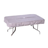 Patio table cover. 72 in. x 42 in. Made of vinyl. Beige.