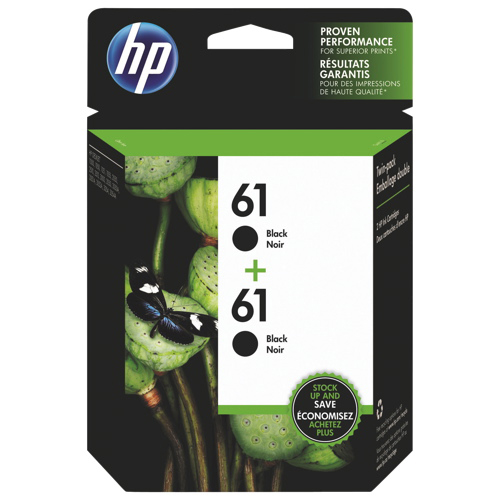 HP 61 Black Ink Cartridge Twin Pack (CZ073FC) Print more pages with the HP 61 Black Ink Cartridge Twin Pack. Each cartridge can yield up to 190 pages, up to twice as many pages than with refills. Product Features Two black in... Read more