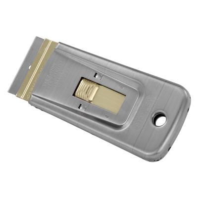 Blade retracts for safe storage Uses standard single-edge razor blades Comes with 5 blades Removes paint, glue, putty or adhesives from glass, tile, walls, floors or other smooth surfaces