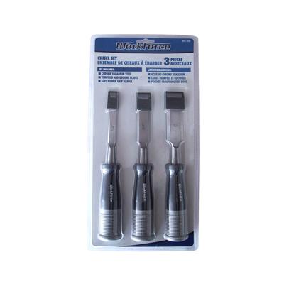 3 Piece Chisel Set with Rubberized Soft Grip Handles for easy use 3 Piece chisel set with rubberized soft grip handles for easy use Tempered and ground blades Soft rubber grip handle