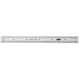 Stainless steel construction. Etched graduations. Front scale in 1/10-in and 1/100 in. Back scale in 1/32-in and 1/64 in.