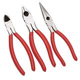 Tough steel jaws with contoured handles Includes one of each: longnose pliers, lineman's pliers and diagonal-style pliers