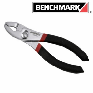 Pliers Slip Joint Pliers S45C/drop forged Chrome plated finish Black/red double dip handle Benchmark logo etched on the head HRC: 43 - 50 With wire cutter Vinyl grip handles 6"