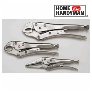 Pliers Locking Plier Set 3 piece High carbon steel (hardened) Home Handyman Nickel plated finish Five rivets INCLUDES: 6.5" long nose locking pliers 7" curved jaw locking pliers 10" curved jaw locking pliers