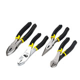 4-piece plier set includes: one 8-in. slip joint pliers, one 8-in. long nose pliers, one 7-in. diagonal cut pliers and ome 8-in. linesmen's pliers. Forged steel construction. Hardened, hand ground cutting edges. Double-dipped handle. Rust-resistan... Read more