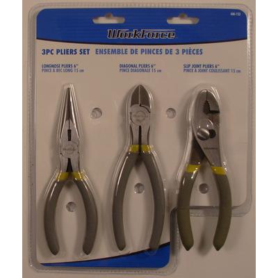 3-piece pliers set. Includes 6" longnose pliers, 6" diagonal pliers and 6" slip joint pliers Induction heat-treated cutting edges Comfortable non-slip cushion grips