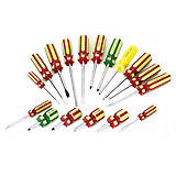17-screwdriver set. Blades made of tough treated steel. Large shatterproof handles for maximum torque and comfort. Contents: 5 slot screwdrivers (1/4 in. x 6 in., 3/16 in. x 6 in., 1/4 in. x 4 in., 3/16 in. x 4 in., 1/8 in. x 3 in.); 1 1/8-in.... Read more