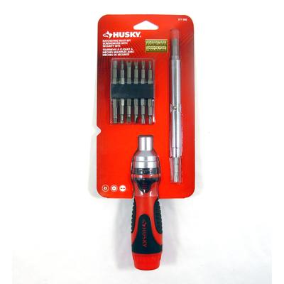 The Husky Ratcheting Multi-Bit Screwdriver has a three-way ratcheting device and a large ergonomically designed grip. 8 double-ended bits included. Backed by a lifetime warranty. Three-way ratcheting device: Right, left, or locked Larg... Read more