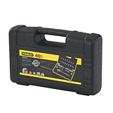 Socket set. Includes: fifteen "Max-Drive" 1/4-in. drive sockets, fourteen "Max-Drive" 3/8-in. drive sockets, one 3/8-in. drive pear head ratchet, one 1/4-in. socket driver handle, one 3/8-in. to 1/4-in. adapter, one 3 in. long, 3/8-in. driv... Read more