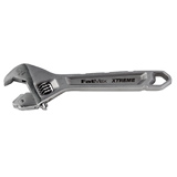 Adjustable wrench. 8 in. Ratcheting jaw function and wide capacity jaw. Laser-etched SAE and metric jaw scale. Chrome vanadium forged body. Ergonomically shaped head. Thick and heavy duty handle. Also available in 10 in. and 12 in.