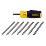 Bits storage in handle allows for quick and easy access Nickel plated bits resist corrosion Takes universal 1/4" high-stress chrome vanadium hex bits Includes seven different bits, including flatheads and Phillips styles