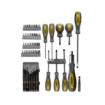 Workforce 62pcs Screwdriver Set •Includes 8 screwdrivers, 1 ratcheting bit driver and 40pc bits set •Includes 6 piece SAE socket set and 1 magnetic extension bar •Includes 6 piece precision screwdriver set with case